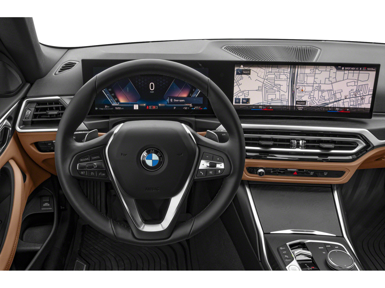 The BMW 4 Series 430i xDrive also comes equipped with the Premium Package, which includes Wireless Device Charging, Comfort Access Keyless Entry, Lumbar Support, BMW Curved Display with Head-Up Display, Heated Steering Wheel, and Heated Front Seats. Additionally, the Connected Package Pro provides a seamless, integrated driving experience.